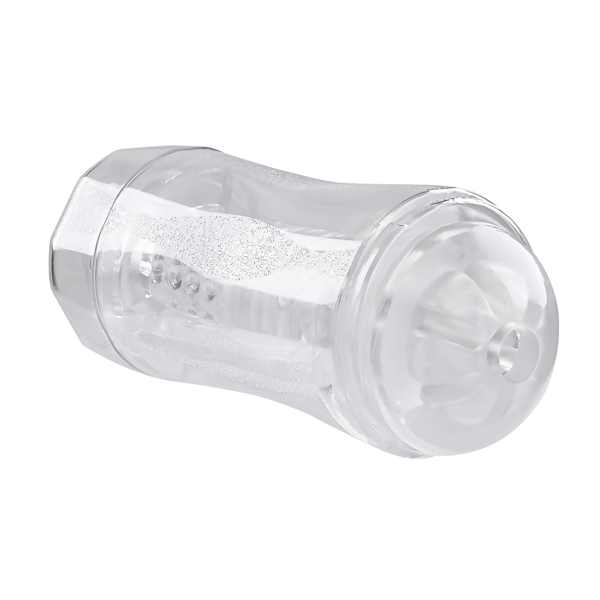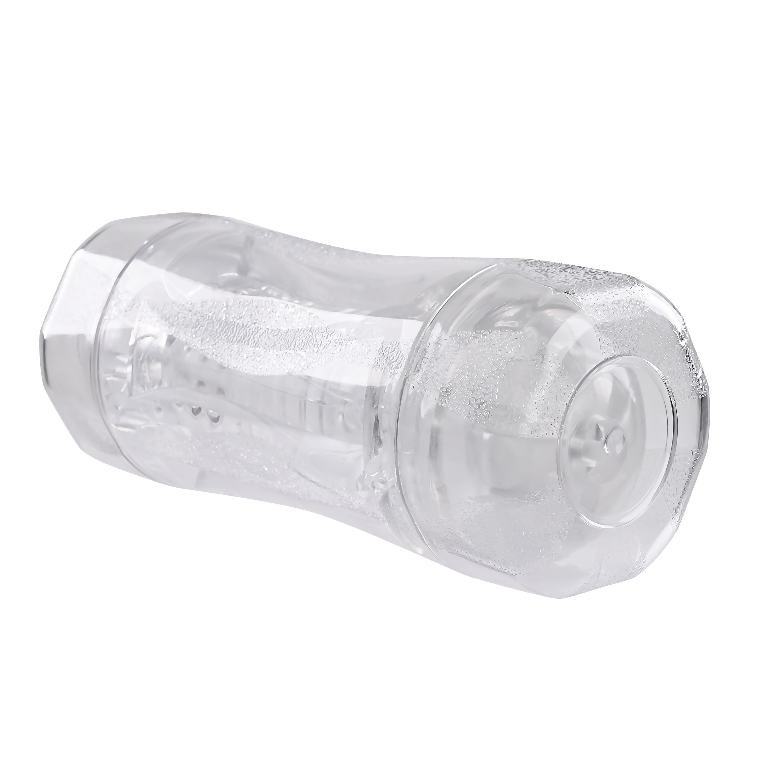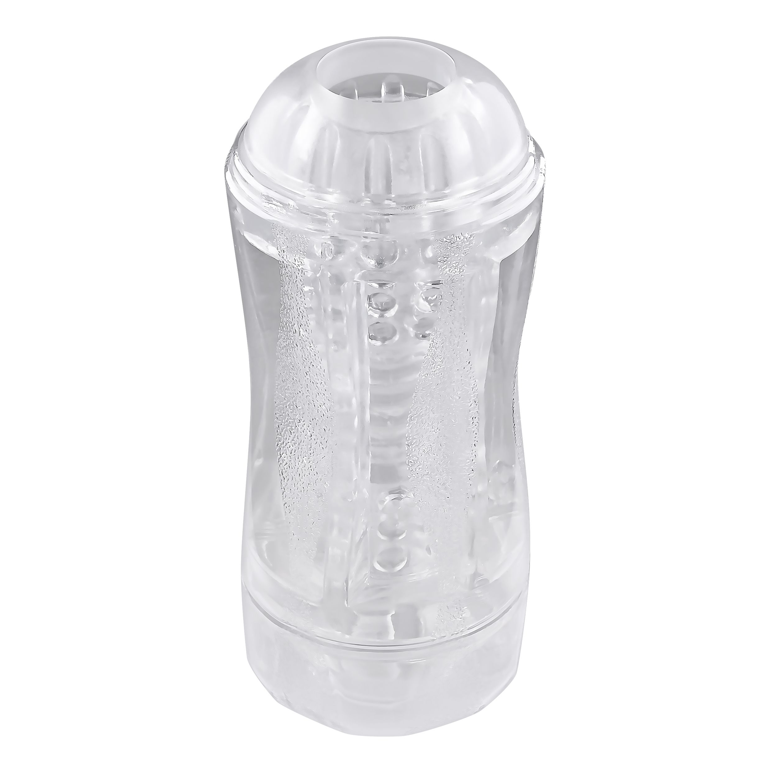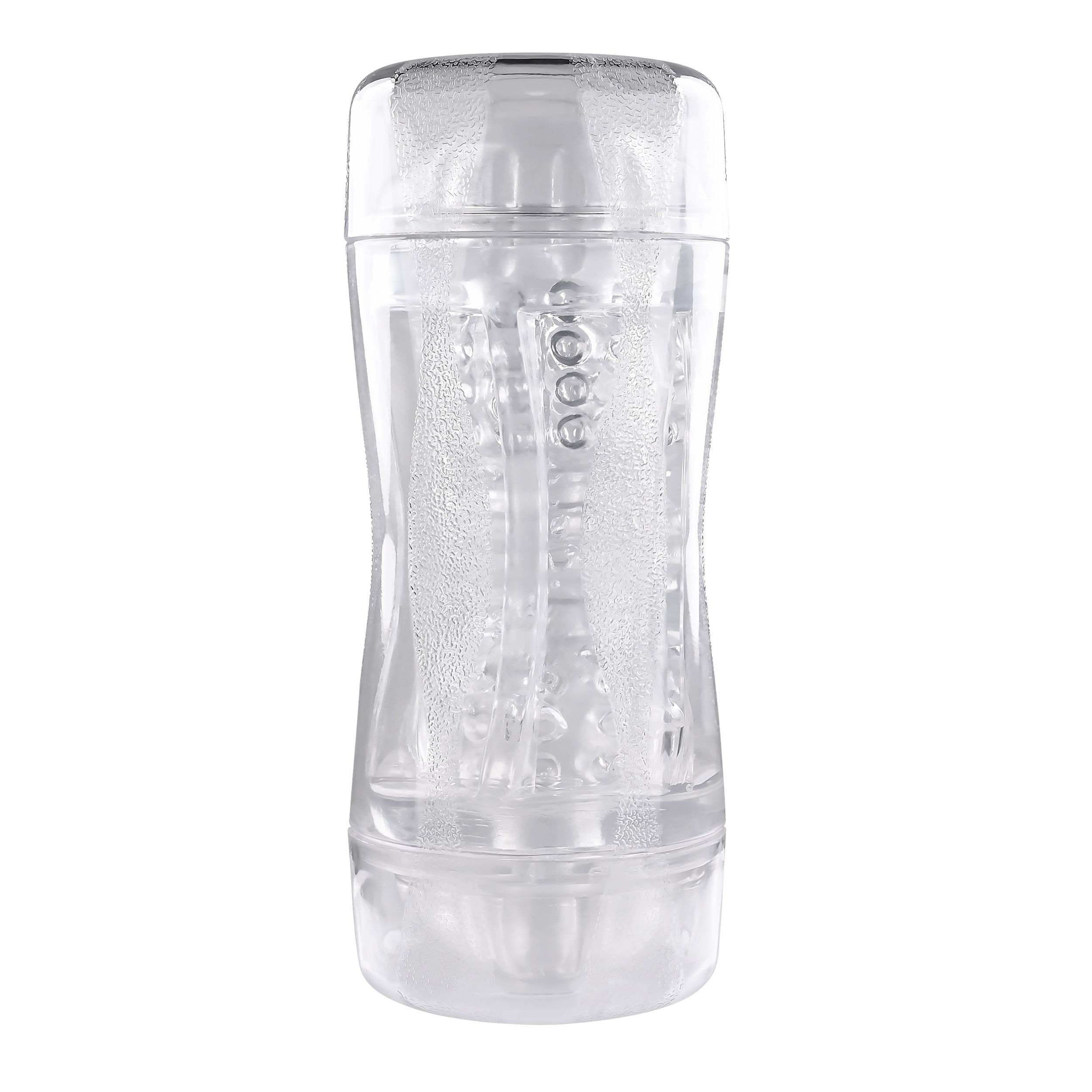 Ervaar plezier als nooit tevoren met deze transparante dubbelzijdige masturbator. Het biedt twee verschillende inloopmaten (strak en los) voor een aanpasbaar avontuur in de kamer met kralen. De zachte maar stevige textuur draagt bij aan de sensatie. Bovendien is er een meegeleverde vibrerende ring voor intense stimulatie. De plastic buitenkant heeft een gestructureerde grip en de doppen aan beide uiteinden zorgen voor veilig opbergen. Het is vrij van ftalaten en latex, en de sleeve is gemakkelijk schoon te maken.